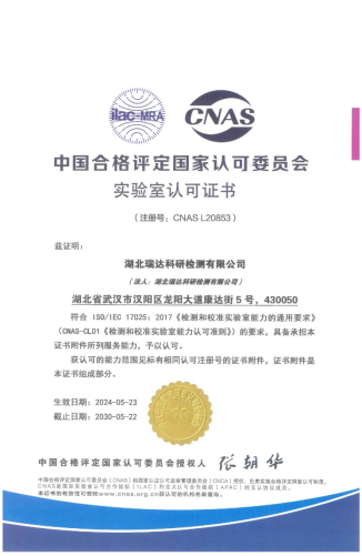 近日,湖北路橋瑞達(dá)檢測(cè)公司順利通過中國合格評(píng)定國家認(rèn)可委員會(huì)(CNAS)各級(jí)審核,取得“實(shí)驗(yàn)室認(rèn)可證書”,標(biāo)志著湖北路橋瑞達(dá)檢測(cè)公司首次躋身國家級(jí)認(rèn)可實(shí)驗(yàn)室行列,具備按照有關(guān)國際認(rèn)可準(zhǔn)則開展檢測(cè)服務(wù)的能力。