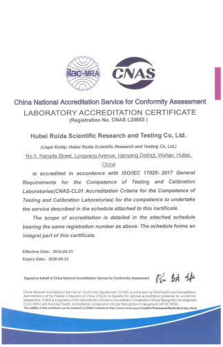 近幾年,湖北路橋瑞達(dá)檢測(cè)公司積極致力于探索新賽道,持續(xù)加強(qiáng)軟硬件能力建設(shè)。此次取得CNAS實(shí)驗(yàn)室認(rèn)可證書,標(biāo)志著瑞達(dá)檢測(cè)公司實(shí)驗(yàn)室的硬件設(shè)施、軟件條件及檢測(cè)能力均達(dá)到國際認(rèn)可水平,有效提升了瑞達(dá)檢測(cè)公司在檢測(cè)行業(yè)內(nèi)的核心競(jìng)爭(zhēng)力。湖北路橋瑞達(dá)檢測(cè)公司將繼續(xù)以匠心踐行初心,持續(xù)推進(jìn)質(zhì)量管理體系建設(shè),不斷培育新質(zhì)生產(chǎn)力,塑造發(fā)展新優(yōu)勢(shì),為企業(yè)改革轉(zhuǎn)型發(fā)展貢獻(xiàn)力量!